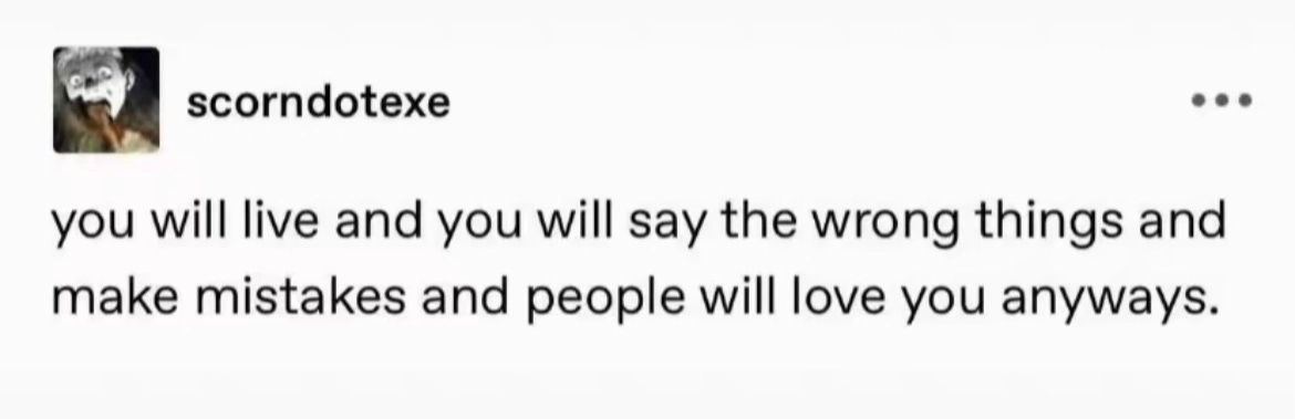 my therapist once mentioned that i was building friendships out of kindness, and albeit that’s not like the worst thing to build a friendship on, it was almost transactional, and i could only give so much of myself before the friendship took a strain on me or the other person distanced themselves. my therapist also mentioned that while giving it your all and nothing else, you’re denying the other person a chance to give, to help out, to step up and work for the friendship.